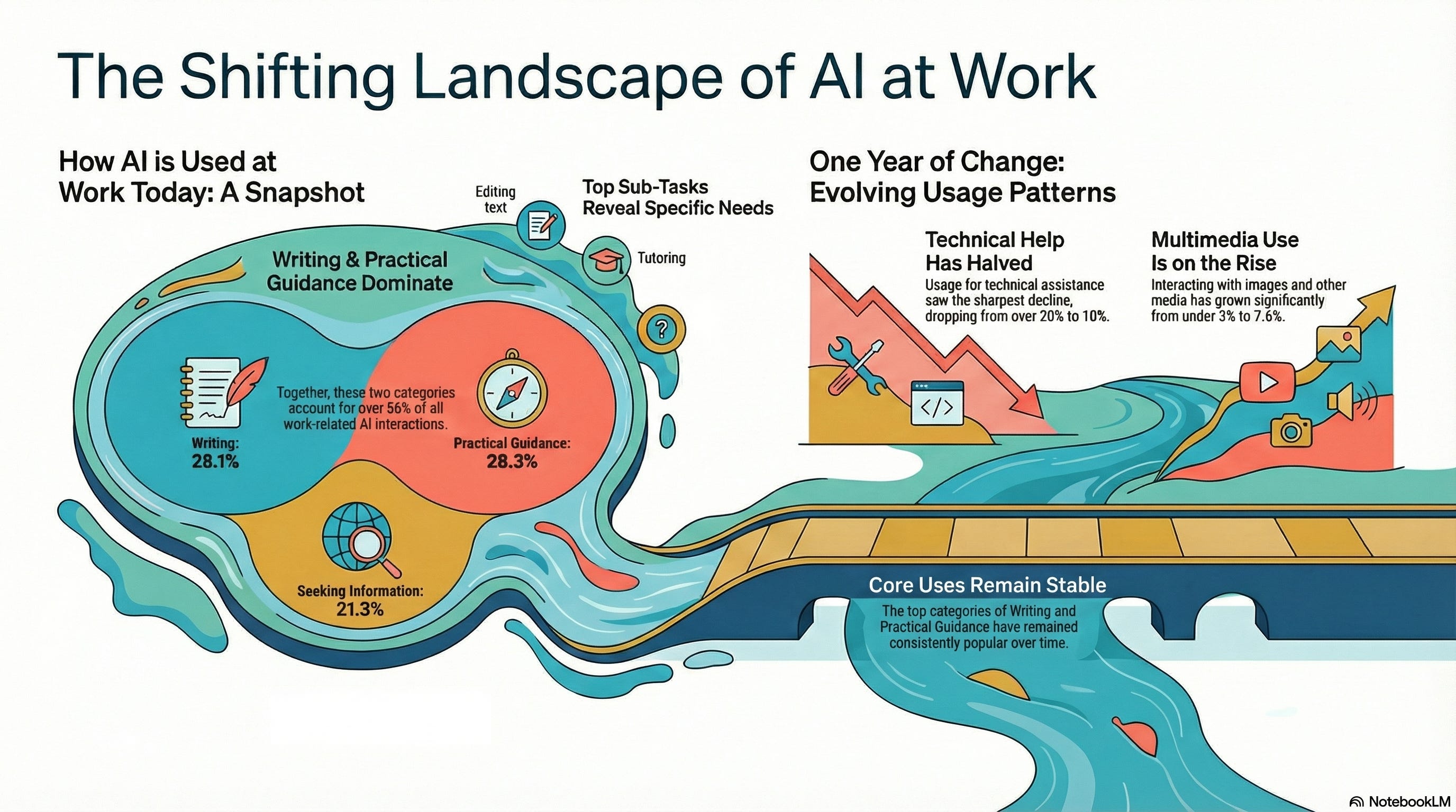 This is the second in a four-part series exploring how people actually use AI today. In Part 1, we examined who is using these tools and discovered adoption patterns that defy typical technology trends. In this post, we dive into what these 700 million users are actually doing—and why it has almost nothing to do with work.